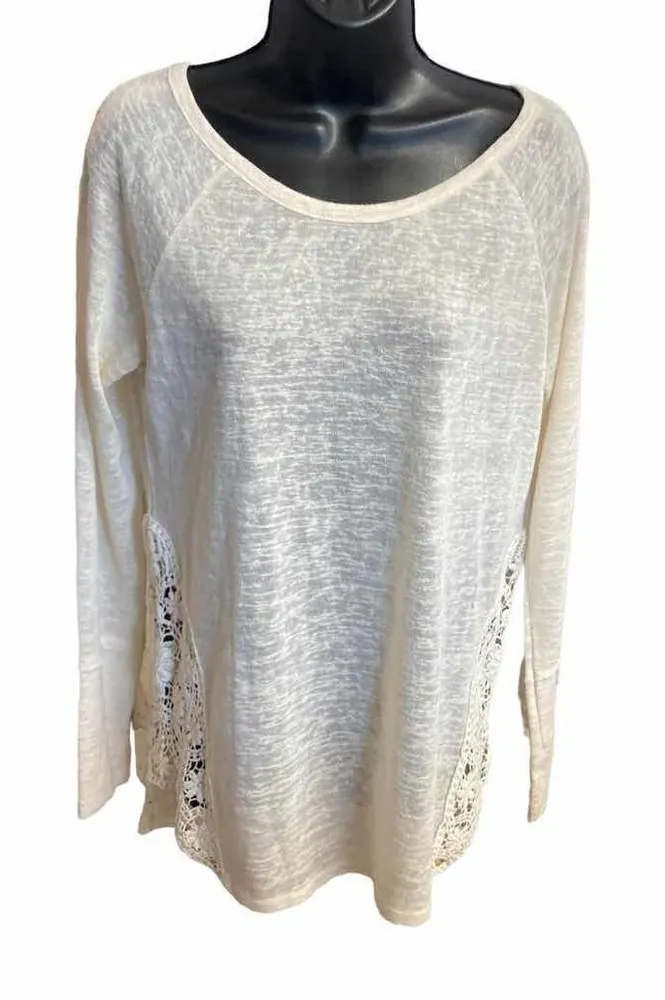 BRAND: Arizona Jean Co. SIZE: Medium COLOR: Ivory/Cream CONDITION: Good Pre Owned MEASUREMENTS: See pictures MATERIAL: 54% Rayon, 46% Polyester OTHER DETAILS: Machine Wash 27.5 Length (back is longer than front) Crochet Sides Please see approximate measurements in pictures before purchasing. Use your own judgment as to the fit. Great to wear with jeans or dress pants. Versatile
