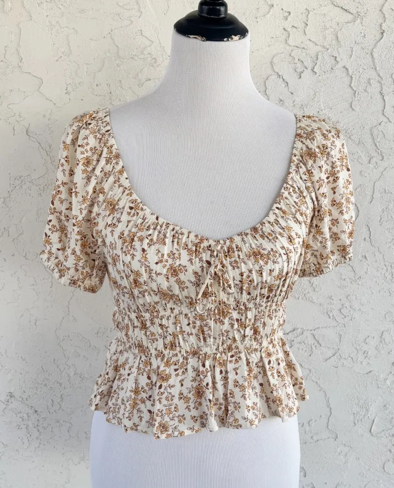 Arizona Jean Company Floral Smocked Blouse - Cream and Brown - $26 - From Blooming