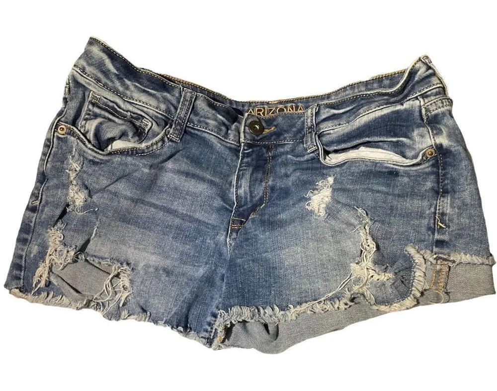The waist hand measures 28”, Size 0 Please see approximate measurements in pictures before purchasing. Use your own judgment as to the fit. W1,47 Sexy trendy summer casual chic stylish ARIZONA Jean Short Shorts Waist 28 Distressed 5 pocket zipper and button closure