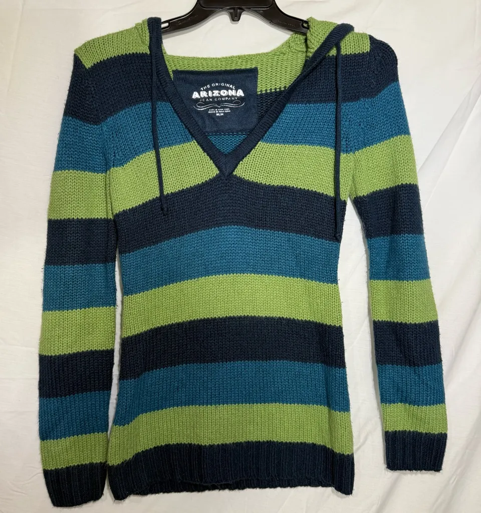 Y2K Juniors Arizona Jean Company V-Neck Sweater - Navy and Lime Hooded Size M Blue - $30 - From Stefanie