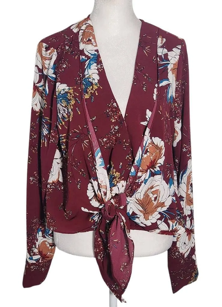 Ark & Co. long sleeve floral blouse with tie waist and a layered look in the front. Same-day shippin... Show more