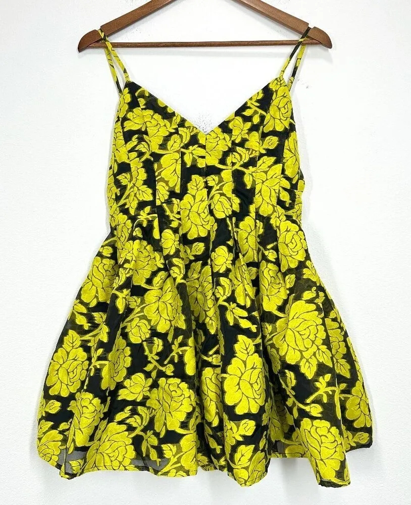 Ark & Co. Full Skirt Micro Mini Romper Yellow Gold Black Floral Brocade Med NWT Brand New with Tags... Show more
