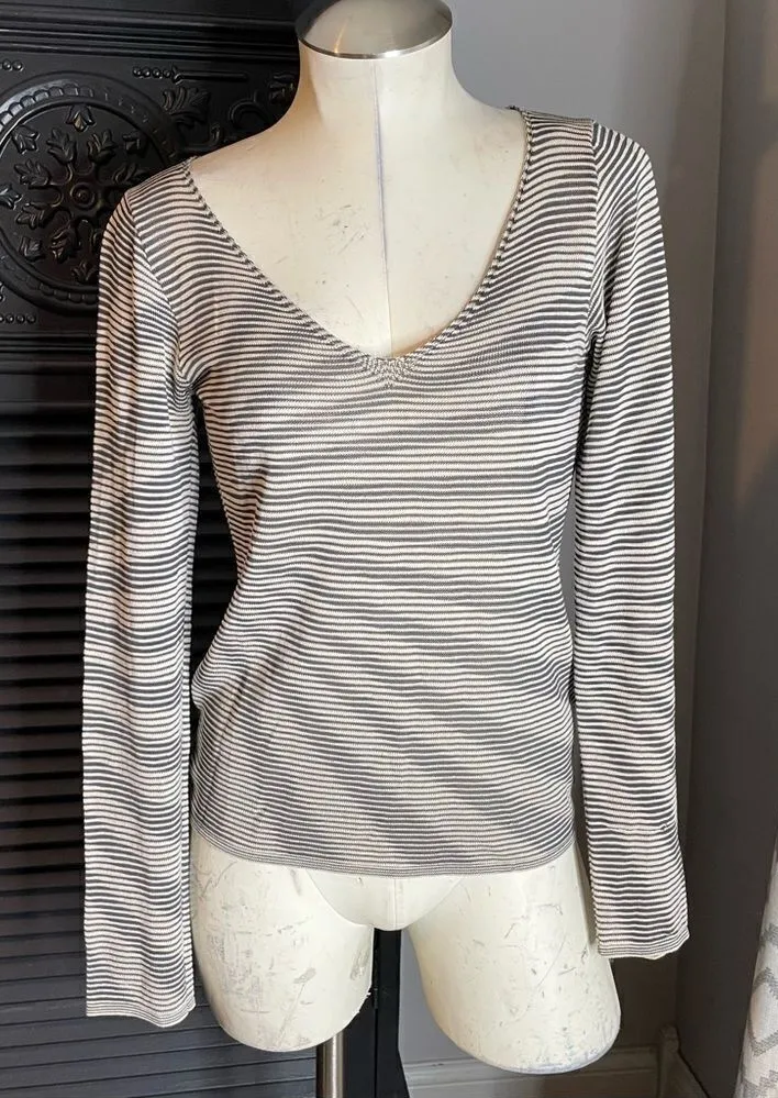 ARMANI‎ COLLEZIONI Irregular Stripe Lightweight Knit Thin Sweater V Neck Top 6 Gray - $80 - From Tiffany