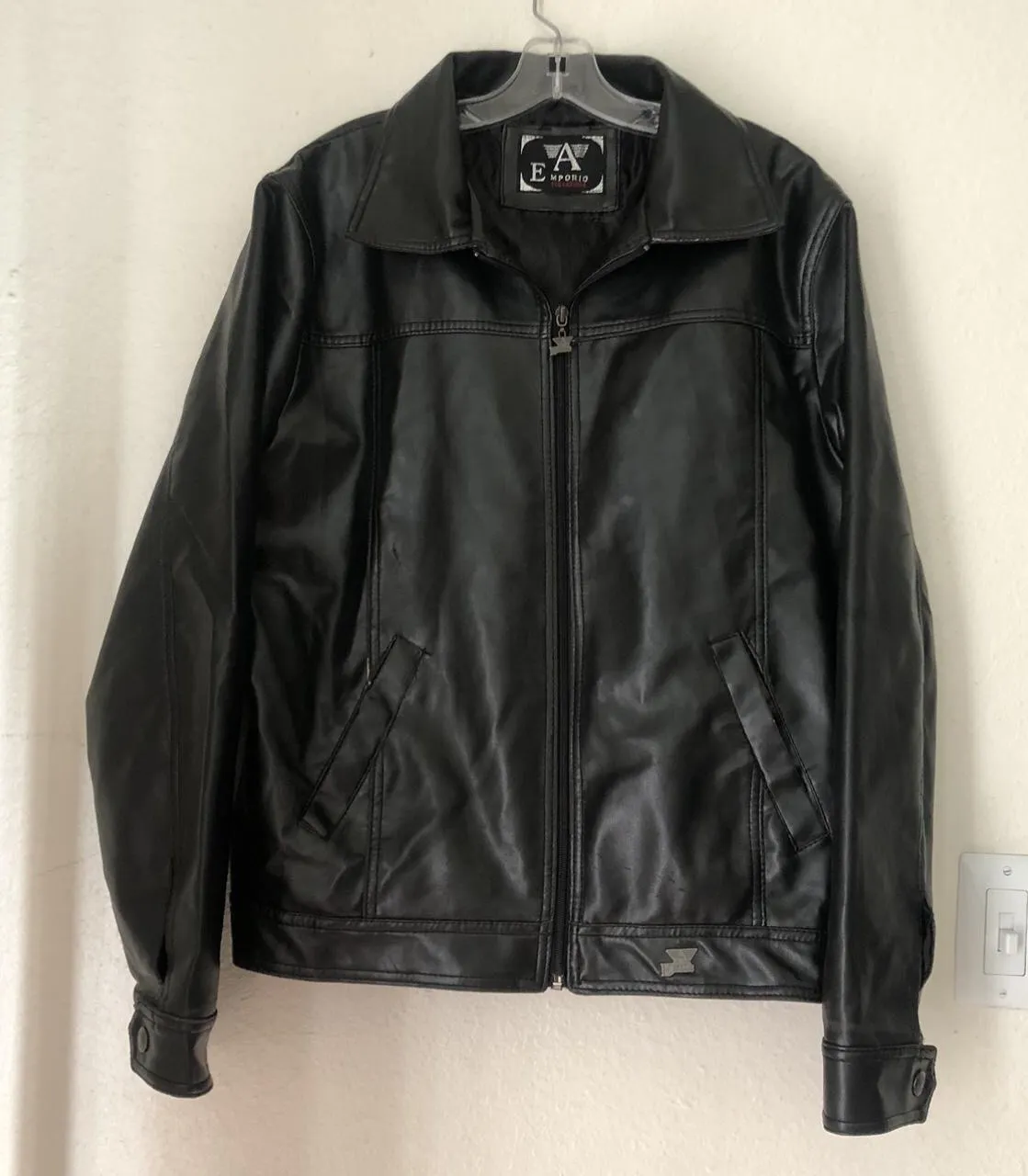 Black Armarni Emporio Collezione black Genuine leather moto bike jacket streetwear Size XL - $121 - From Victoria