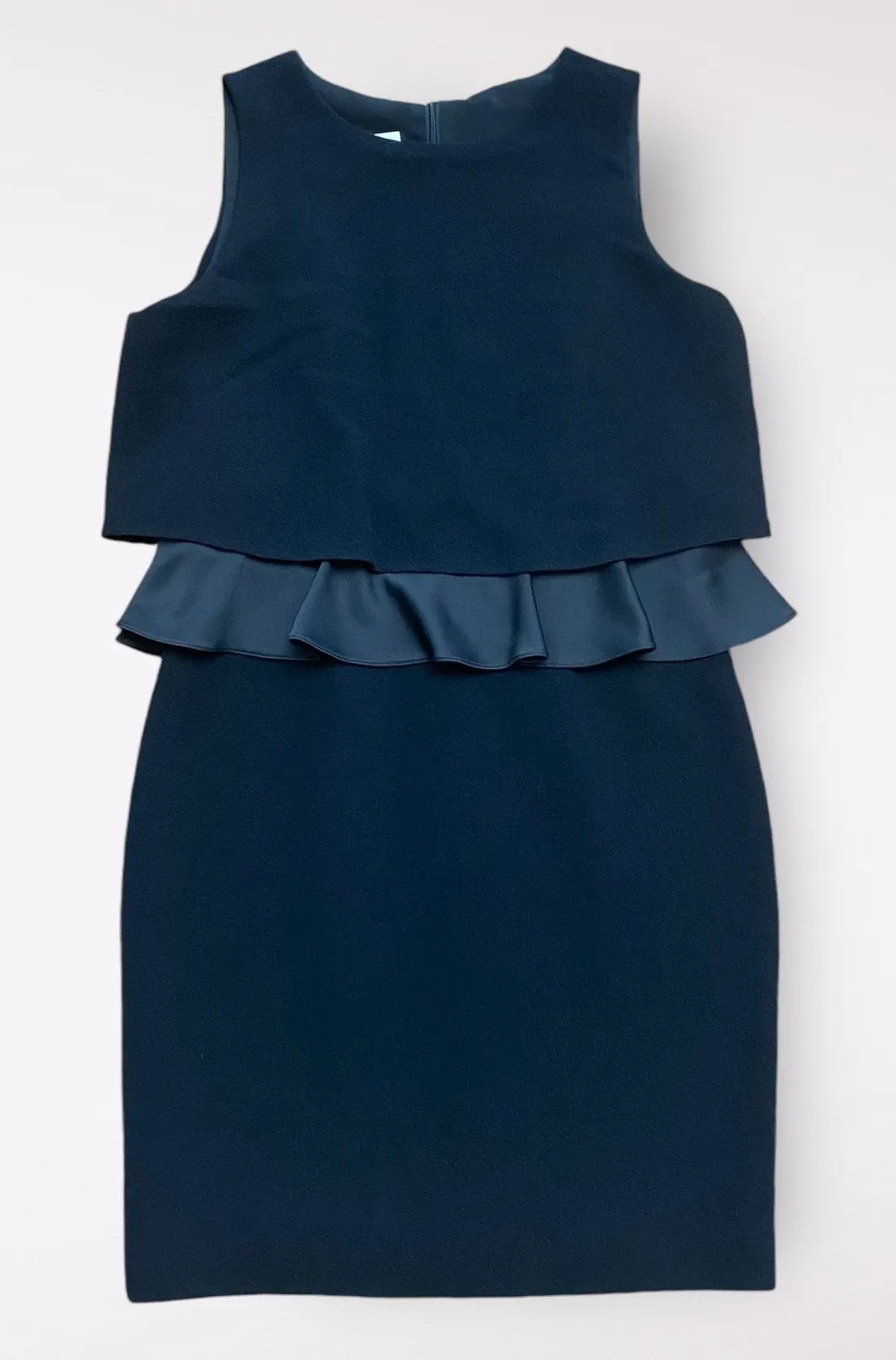 Armani Collezioni Black Wool Peplum Knee Length Dress Size 8 Measurements in photos Dry clean ONLY Pre owned designer in excellent condition Designer, chic, classic, lbd, little black dress, office, business, going out, neutral, high end