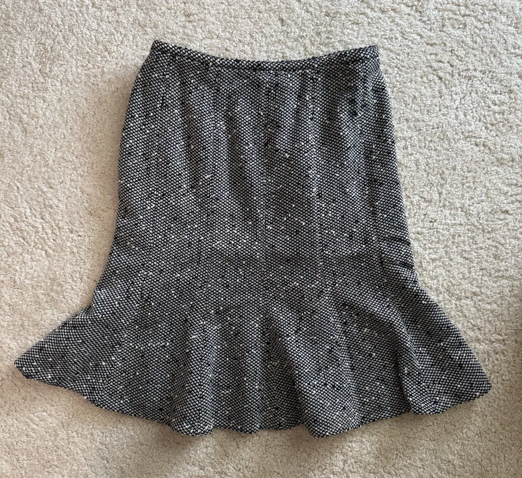 Beautiful mermaid flare skirt by Armani Collezioni Wool and nylon blend. Lined. Black white gray spe... Show more