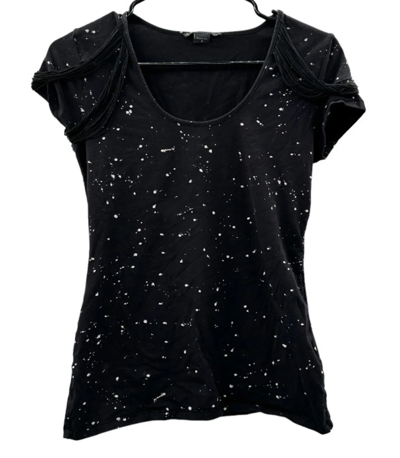 Armani Exchange Black & Cream Paint Splatter Fringe Shoulder Short Sleeve Shirt Short sleeves Scoop... Show more