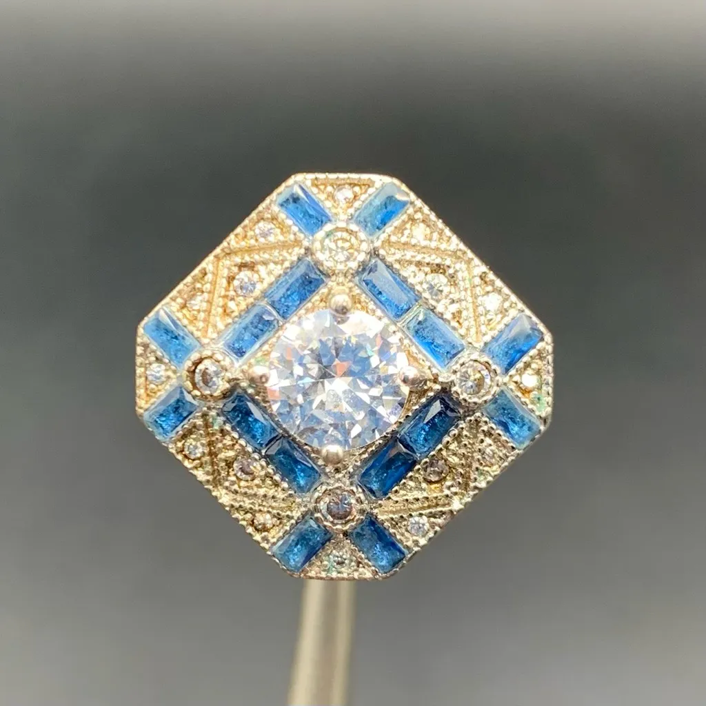 Art Deco Era Reproduction Ring Silver Plated White Blue Cubic Zirconia Size 8.25 - $18 - From Ashley