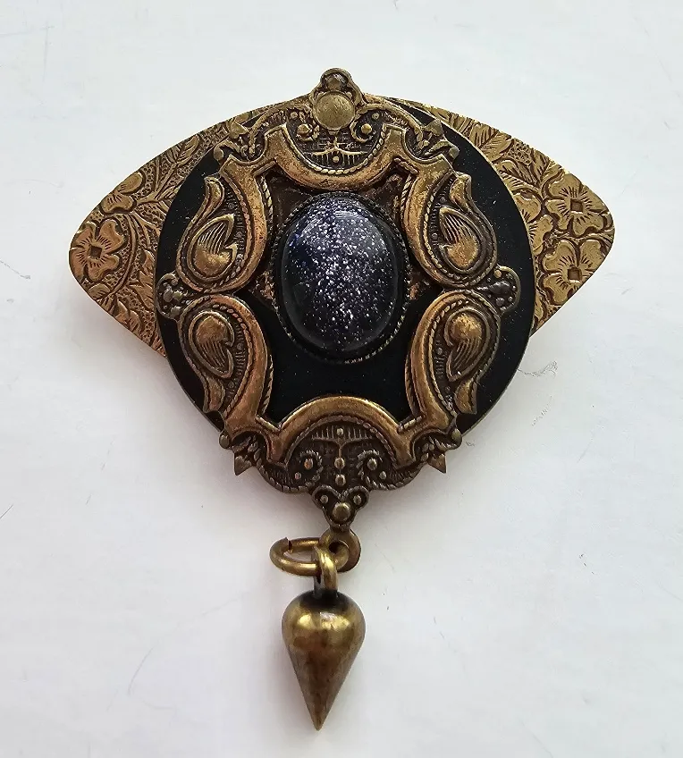 This exquisite brooch features a stunning combination of black and gold tones, perfect for adding a touch of elegance to any outfit. Its intricate design makes it a standout piece in any jewelry collection. *Vintage Jewelry Condition Disclaimer* All vintage jewelry pieces are unique and may show signs of wear consistent with their age. Each item is inspected for authenticity and overall condition, but minor imperfections such as surface scratches, tarnishing, or slight color variations are to be expected. Descriptions and photographs aim to provide a clear representation of each piece’s condition. Due to the inherent fragility of vintage and antique items, I sometimes refrain from cleaning them to avoid potential damage to their delicate materials or finishes. Restoration or repairs may have been carried out, and some wear and tear is typical. Origins, dates, and materials are based on my best knowledge and research but may not always be entirely accurate. I strive to accurately describe and represent each piece, so please contact me with any specific condition concerns before purchasing.