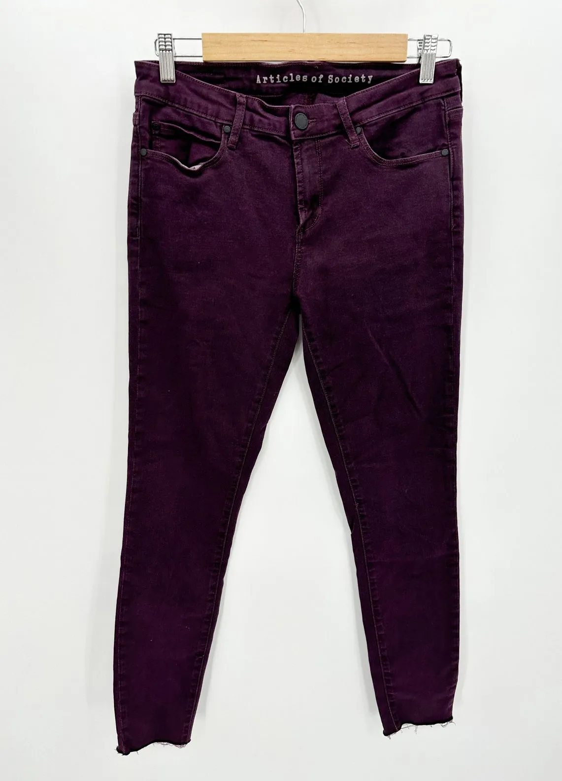 sarah skinny jeans in a plum color. lots of stretch. mid rise. Zip fly with button closure. Five-poc... Show more