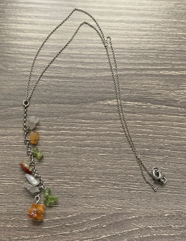Purchased in Taiwan in the early 2000s. Stamped 925. Sterling silver and genuine semiprecious stones including peridot. Gorgeous chain detail and movable lariat style. Super flattering!