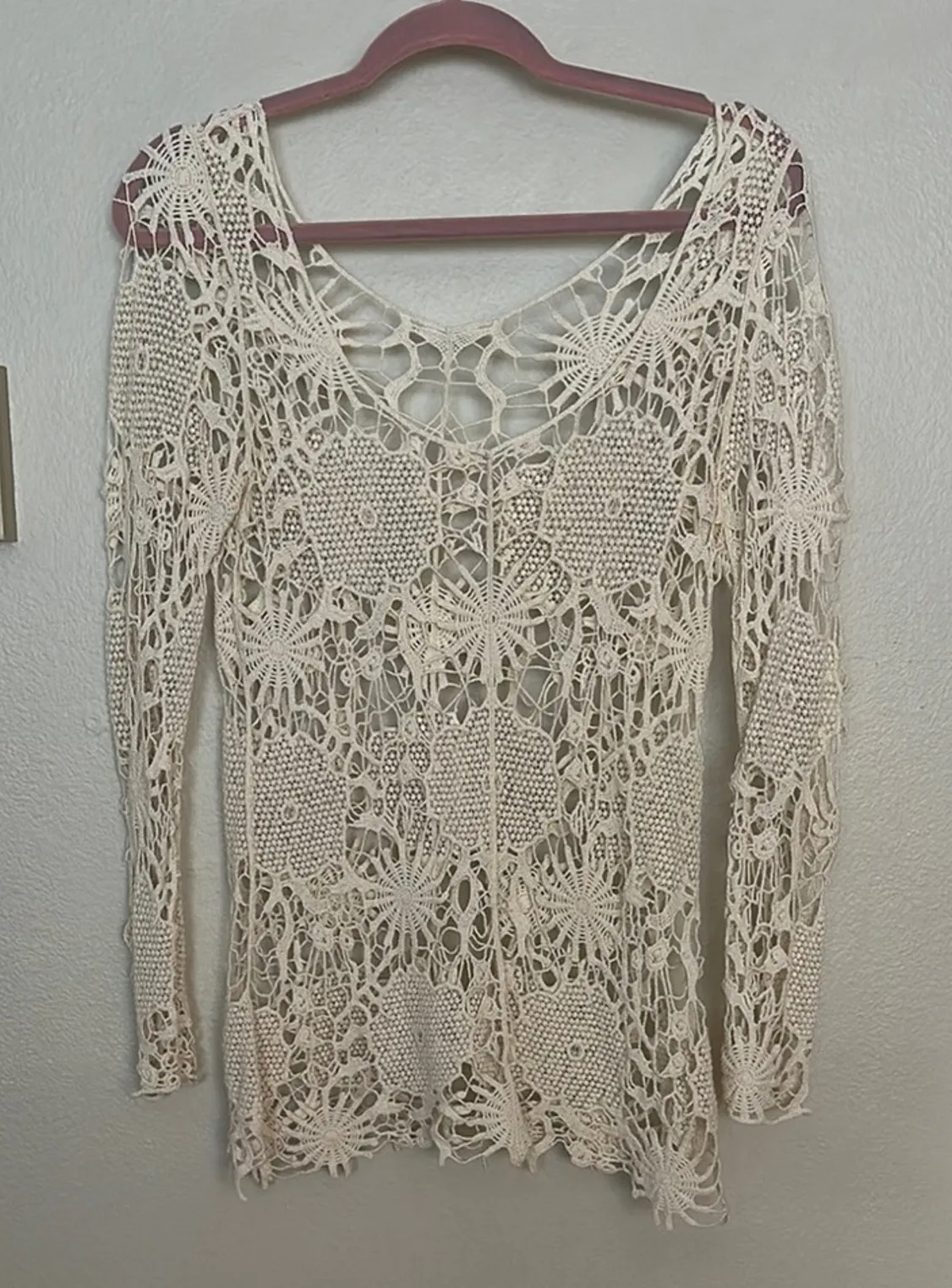 Chic Cream Crochet Long Sleeve Top Boho Summer Floral Western Coastal Size undefined - $18 - From Phoebe