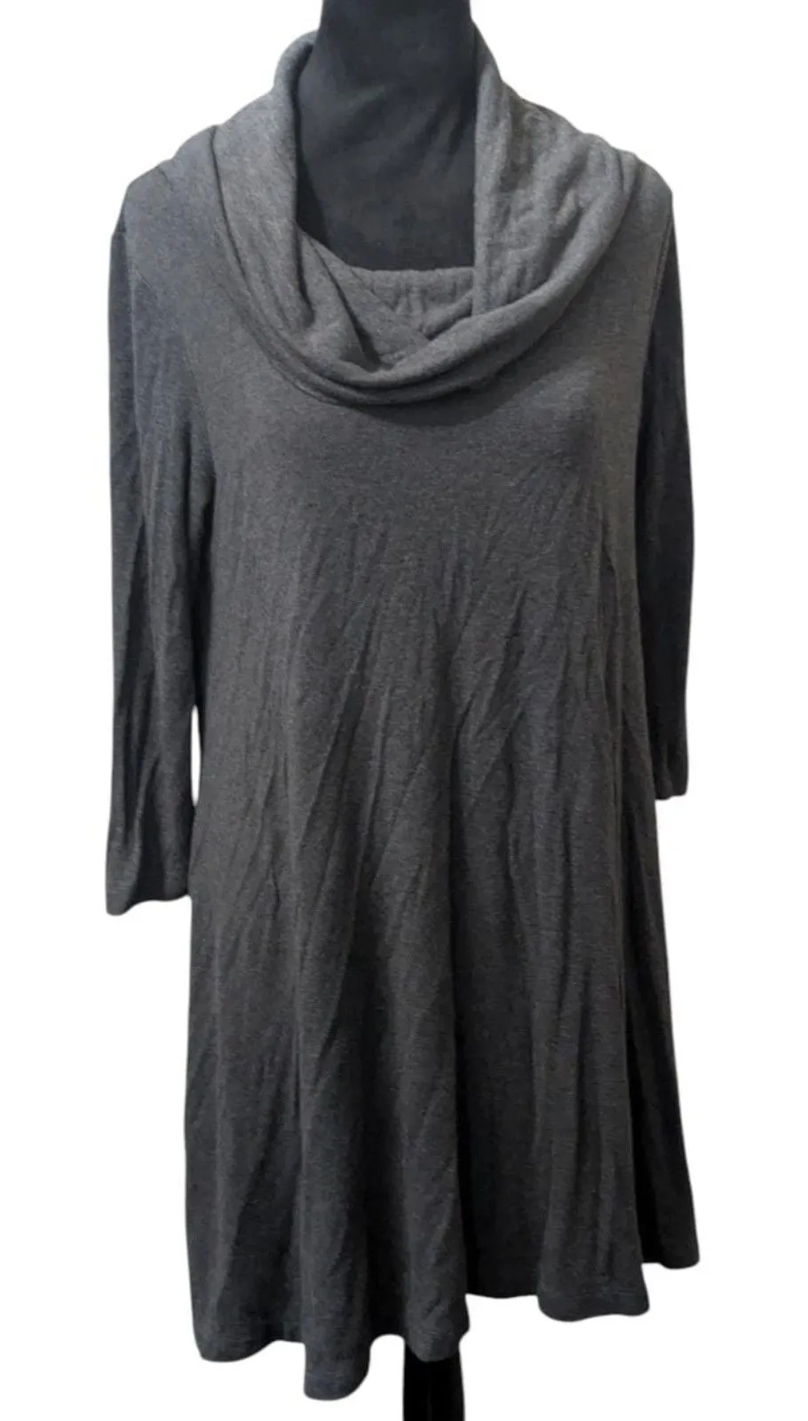 Can you feel that? The instant weightlessness of a dress that understands you. As you drape this Artisan NY masterpiece over your silhouette, notice how the luxuriously soft rayon-stretch blend flows with your every movement, like a second skin designed for pure serenity. This isn’t just a charcoal gray dress; it’s a hypnotic loop of comfort and high-end minimalism. Imagine the effortless confidence as the elegant cowl neck frames your face, inviting a sense of quiet power into your day. Whether you're layering it for a sophisticated Lagenlook or wearing it solo for a modern "quiet luxury" vibe, this piece transitions with you from morning reflection to evening allure. Don’t just get dressed—experience the art of the drape. Claim your new signature look now. Highlighted Features Brand: Artisan NY—a label dedicated to "timeless, high-quality pieces" and "bohemian charm". Aesthetic: Perfect for Minimalist, Lagenlook, Quiet Luxury, and Dark Academia styles. Fabric: Ultra-soft, breathable blend of 96% Rayon and 4% Spandex for a flawless, stretchy fit. Neckline: Sophisticated draped cowl neck for an effortless, chic look. Length: Classic midi/knee length depending on height (approx. 36" length). Size: US Large (fits true to size with a relaxed, flowy drape). Condition: Pristine pre-owned condition, ready to be the anchor of your wardrobe.
