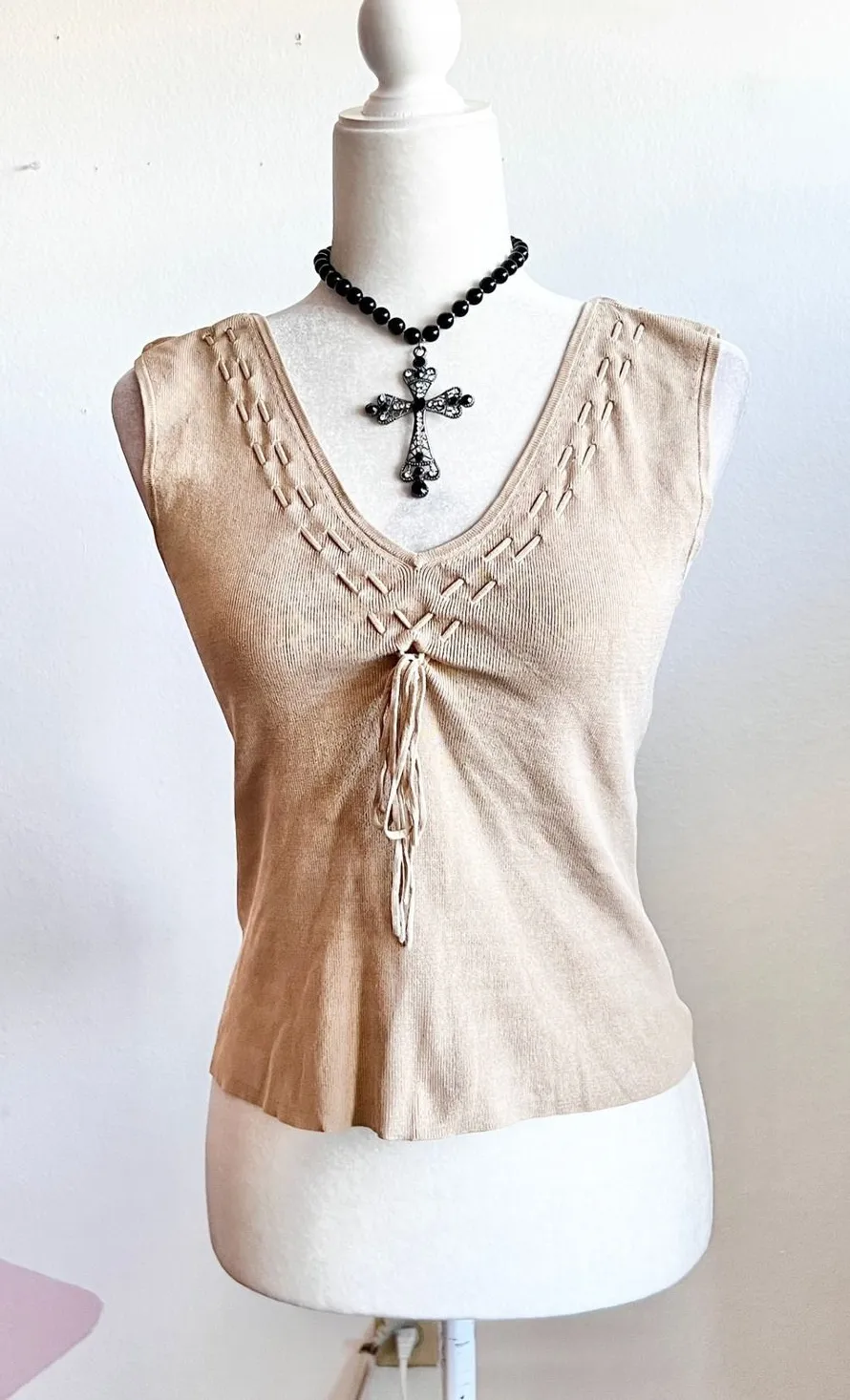 Vintage Lace Up Tank Top Y2K 2000s Western Festival Coachella Medium Brown - $30 - From Kenia