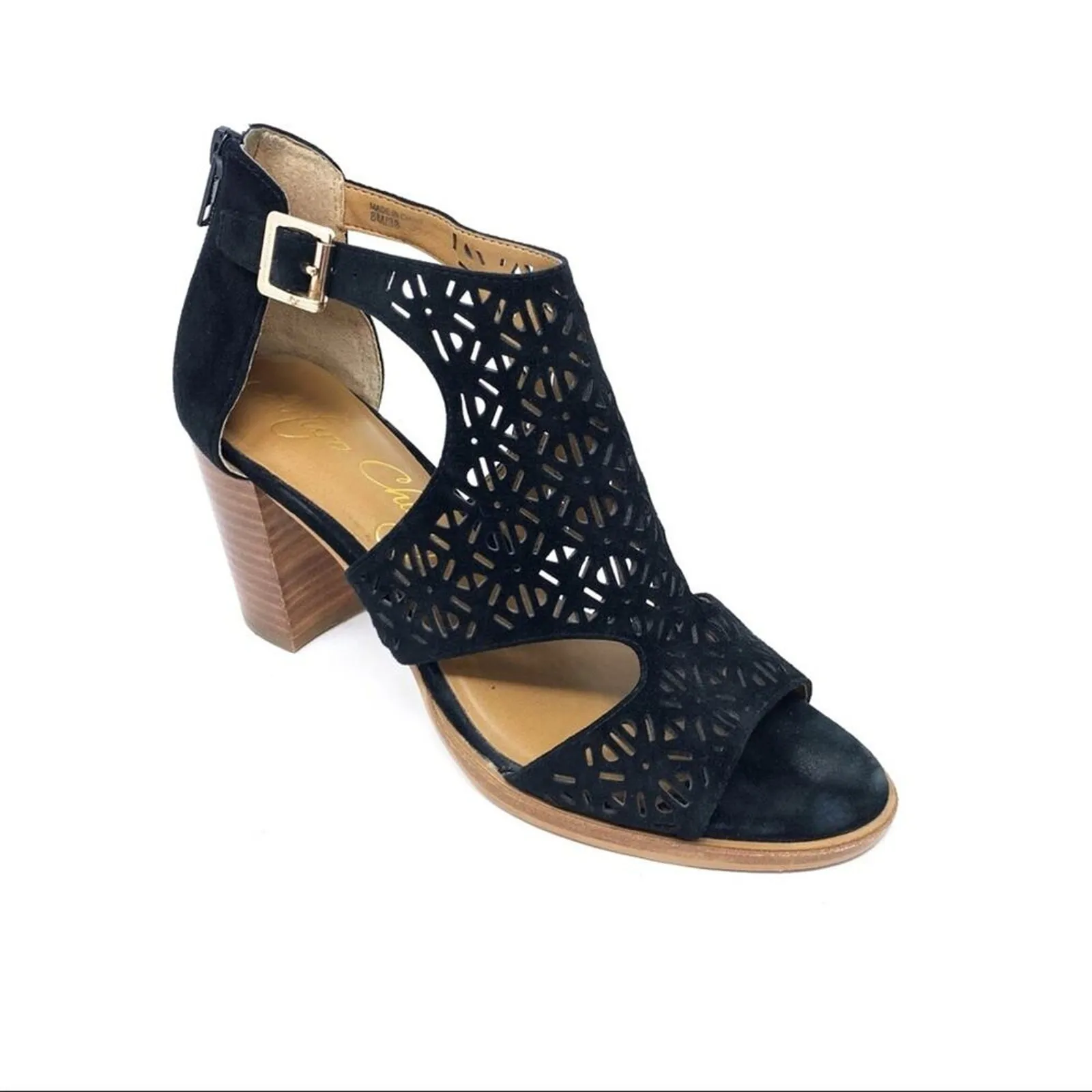 Arturo Chiang Edythe Laser Cut Black Nubuck Leather Block Heel Sandal Size 8 - $39 - From Jackie