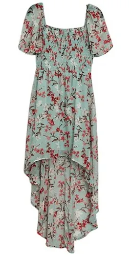NWOT As U Wish Green Floral Chiffon Smocked Asymmetrical Dress sz LARGE. Beautiful design and femini... Show more