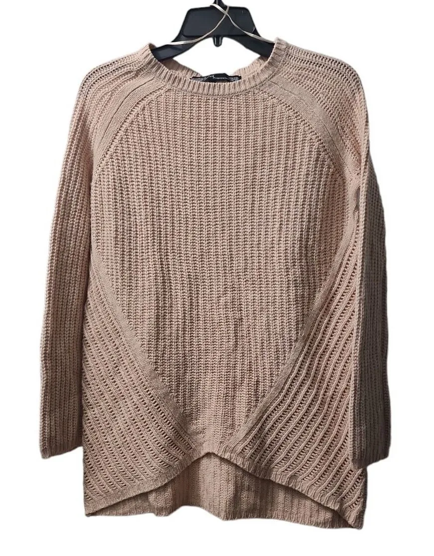 Stylish knit sweater tunic by Ashley by 26 International, perfect for adding a touch of casual elegance to your wardrobe. This long-sleeve sweater features a unique knit pattern and a comfortable, relaxed fit. The design incorporates raglan sleeves and a high-low hem, adding a modern twist to a classic silhouette. Its versatile style makes it suitable for various occasions. Pair it with jeans for a relaxed weekend look, or dress it up with leggings and boots for a cozy yet chic ensemble. Ideal for layering during cooler months or wearing on its own during milder weather. Chest 36 Length 26 Keywords: knit sweater, long sleeve sweater, tunic sweater, casual sweater, beige sweater, medium sweater, Ashley by 26 International, women's sweater, fall fashion, winter fashion, comfortable sweater, relaxed fit, pullover sweater