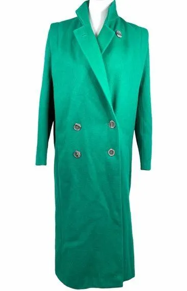 Ashley Scott Double Breasted Long Coat Vintage Size tag is missing, fits like a Large Emerald green Shiny gray buttons 100% wool Gently used Black lining There’s a little scuff on the collar, it doesn’t show when the collar is folded down 2 front pockets Measures approx 45.5 inches long 21 inches across on a flat lay