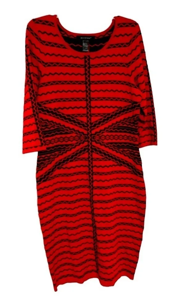 Geometric, soft, Jersey feel like material vibrant, red and black Ashley, short dress, stretchable contour to your body great for evening out to dinner, even to the workplace holiday party. Bodycon Dress. Plus size. Last two pictures are the same designer, but a different print of the dress but that's what it would look like if you wore it.