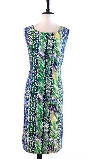 Ashley Stewart • Green Blue Sheath Dress • 12 Style Details • Sleeveless sheath dress • Round nec... Show more
