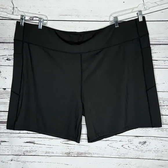 Ashley Stewart Sport Size 30/32 Black Athletic Bike Shorts. Elastic Waistline. 2 Pockets. Polyester/... Show more