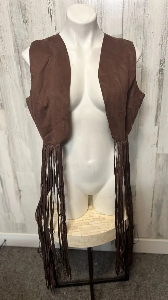 Size: Women’s 14 Measurements (approx using AI): • Pit to pit (chest): 20” • Length (shoulder to hem): 36” (including fringe) Smoke-free home No rips No stains Ships fast — same or next day Open to offers or bundles! Measurements are estimated using AI based on mannequin fit. Please allow slight variation. Fabric: Faux suede (outer) Smooth lining Details: • Beautiful brown faux suede vest with long fringe trim • Western-inspired boho style — perfect for festivals, concerts, or layering • Open front design for a flattering drape • Fully lined interior for comfort • Brand: ASHRO Keywords: Ashro fringe vest, western fringe jacket, boho festival vest, faux suede layering piece, brown long vest, size 14