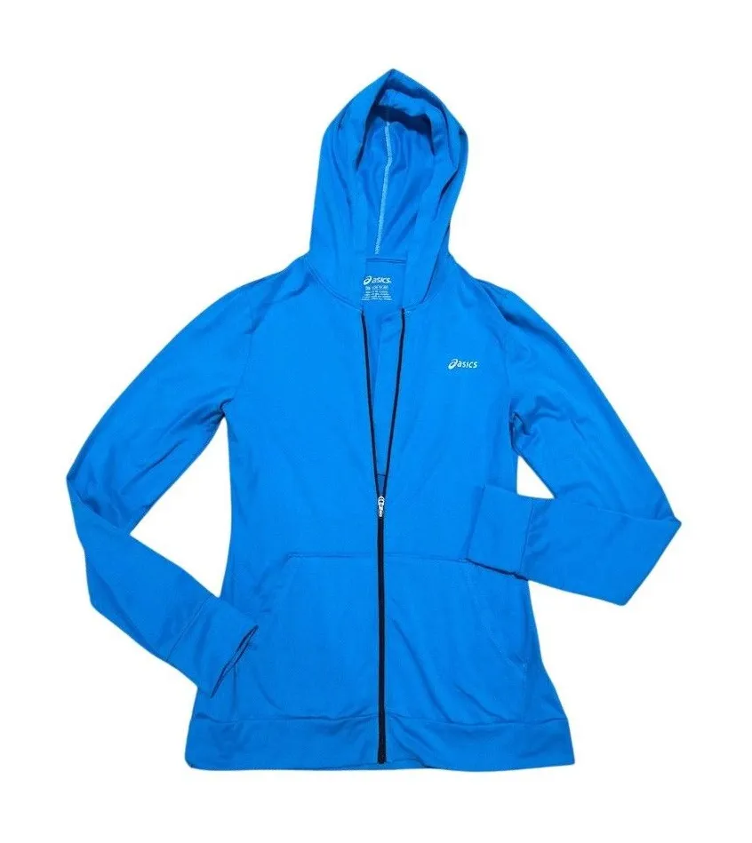 ASICS women’s full zip hoodie jacket in blue, size XS regular fit. Long sleeves with a hood and draw... Show more