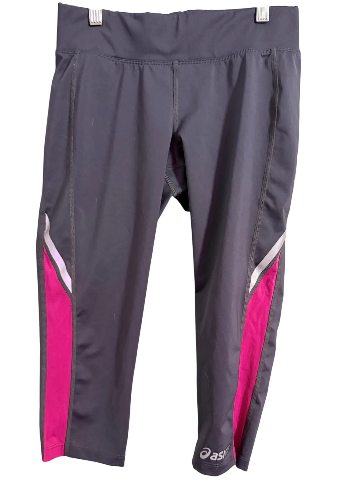 Keywords: ASICS capri leggings, women's athletic leggings, pink and gray leggings, workout pants, activewear, running leggings, gym leggings, performance leggings, athleisure pants, capri leggings, ASICS women's, fitness pants, sports leggings
