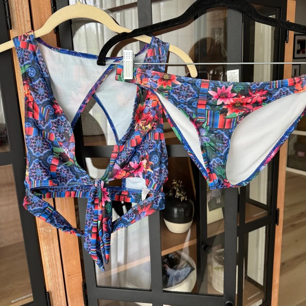 ASOS Aztec mexican kaleidoscope print bikini set colorful cutout tiefront floral Blue Size 8 - $25 - From Filo