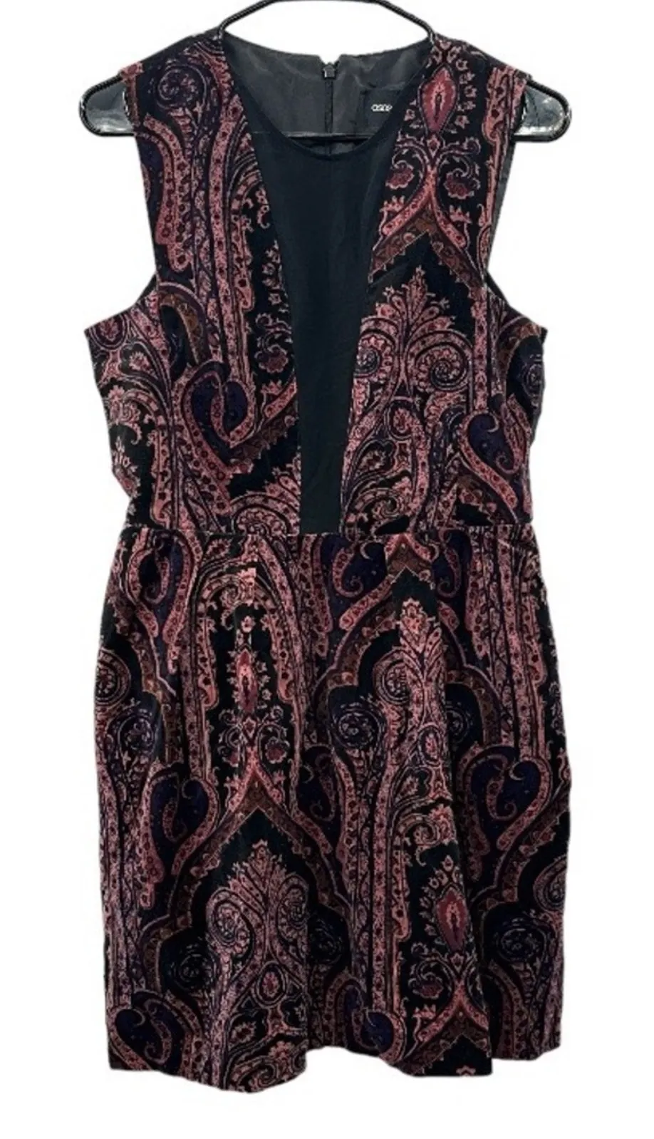 ASOS Black & Pink Paisley Print Velvet Sleeveless Fit & Flare Mini Dress Sleeveless Scoop neck Fit &... Show more