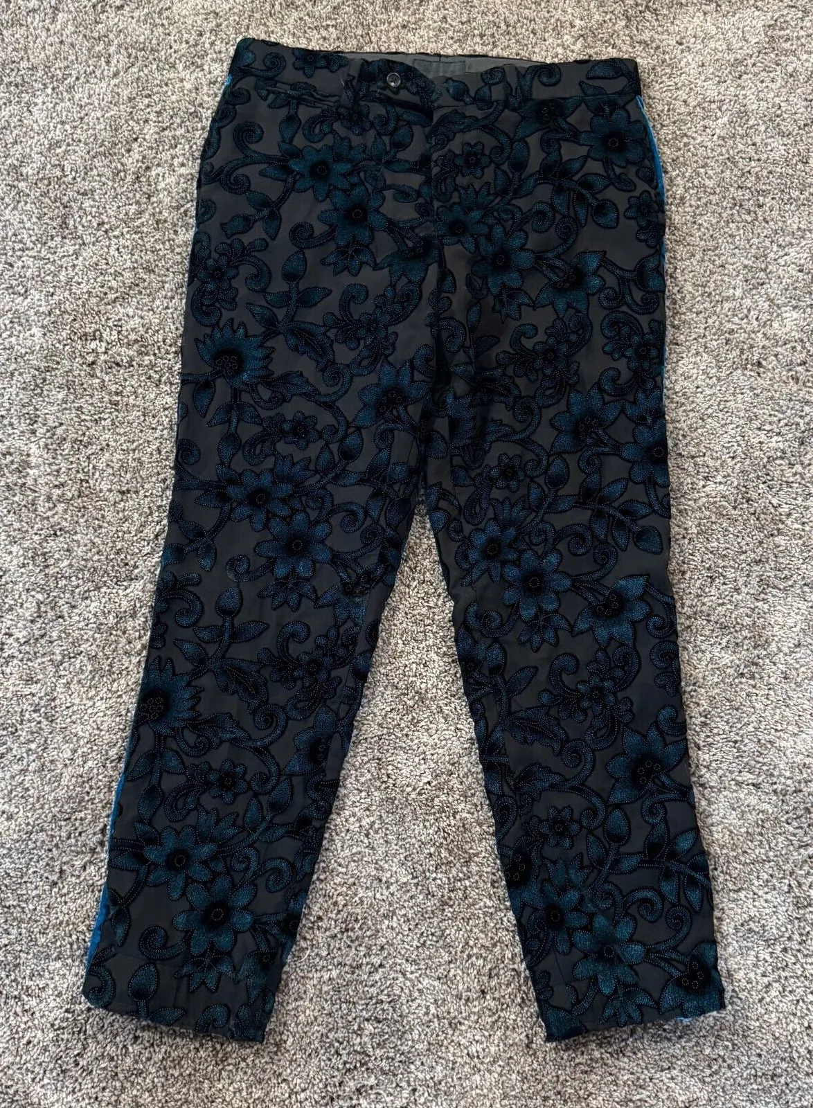 ASOS Black Floral Velvet Tapered Pants, Size W31 L30 - Elegant Evening Wear -----------------------... Show more