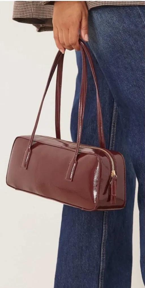 ASOS- burgundy patent faux leather elongated shoulder bag - $50 - From gina