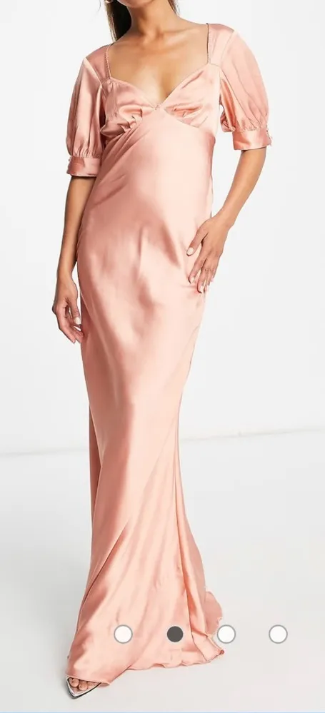 Brand New With Tags. ASOS Design Bias Cut Satin Maxi Tea in Peach Dress. Satin maxi dress in a warm... Show more