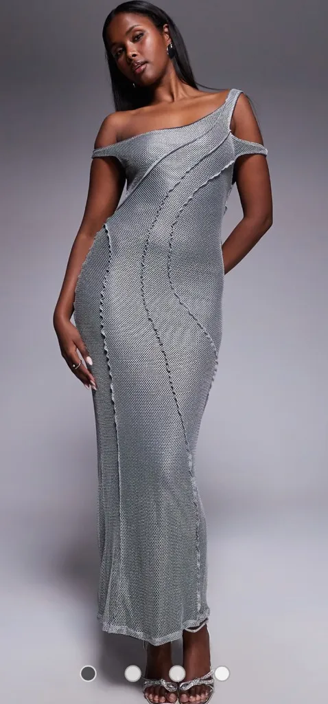 Brand: ASOS Size: 2 Color: silver Metallic finish Off-shoulder style Seam details