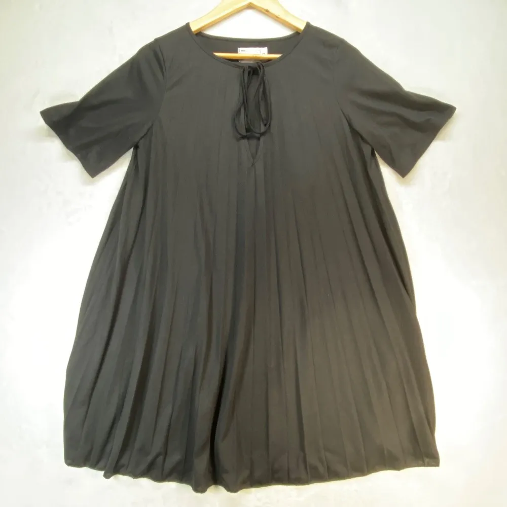 Keywords: ASOS DESIGN, pleated dress, babydoll dress, mini dress, black dress, short sleeve dress, tie neck dress, women's dress, size 6, polyester dress, casual dress, party dress, contemporary, modern, boho chic, bohemian, minimalist, lagenlook, capsule wardrobe, closet staple