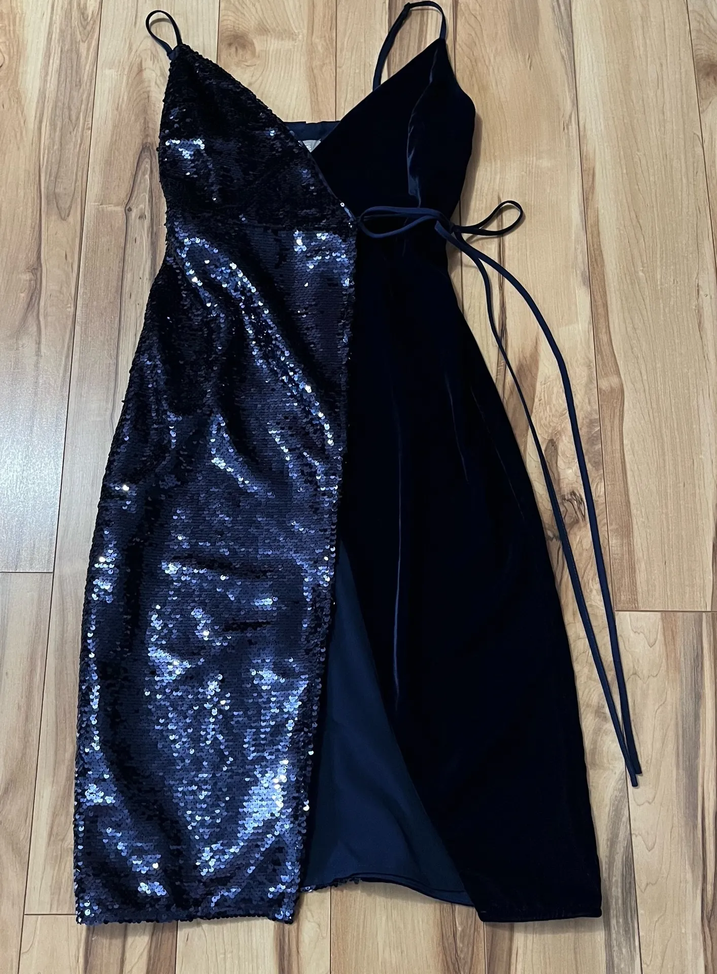 Excellent preowned condition Asos Design Wrap Dress Womens Sz 0 Blue Sequin & Velvet New Years Eve... Show more