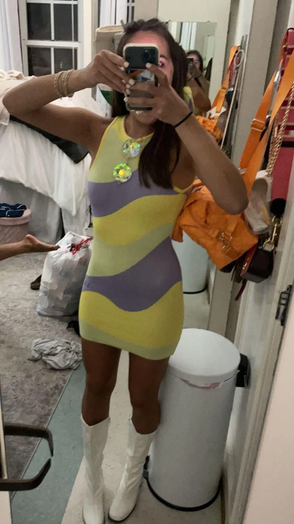 I bought 2 so I have an extra! Thick material- tight so it’s true to size. Open back & so flattering... Show more