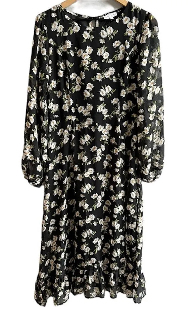 ASOS Emory Park Dark Ditzy Floral Print Maxi Dress Size Large Long Sleeves Cut Out Open Back... Show more