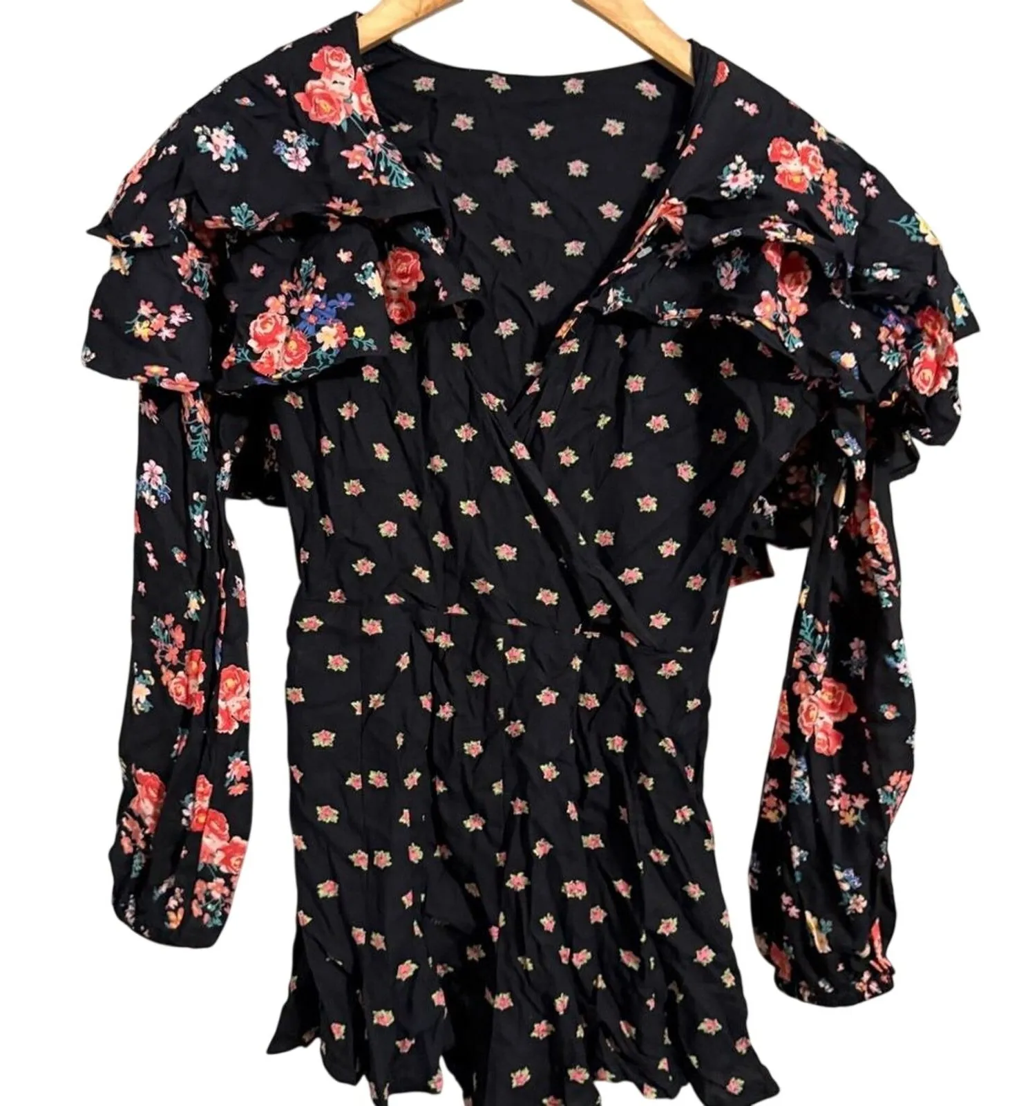 Captivate with this charming ASOS mini dress, blooming with a vibrant floral print. Delicate ruffle... Show more