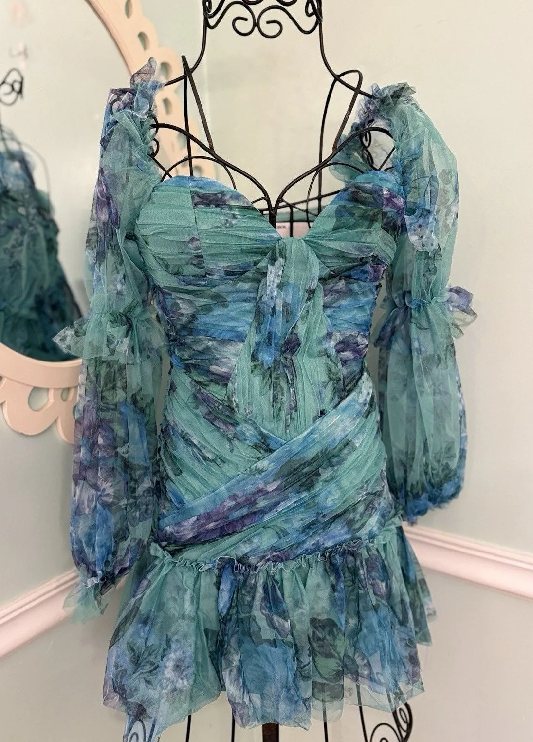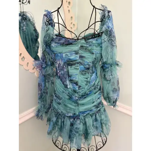 ASOS LUXE puff sleeve ruched chiffon mini dress in blue floral print 0 Whismsy - $24 - From NiCole