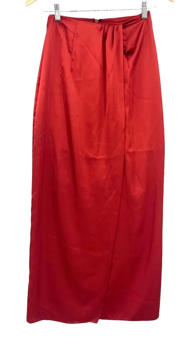 ASOS Rust Satin Maxi Skirt Size 0 Slit Front Evening Formal Y2K Minimalist Full Wrap like with slit... Show more