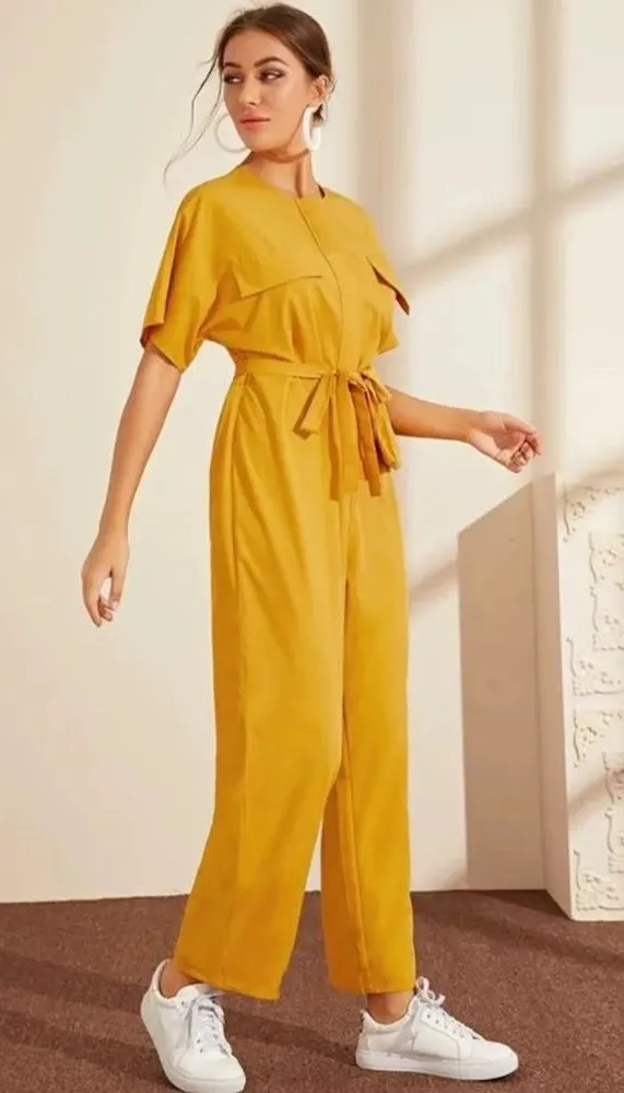 Stylish mustard boiler jumpsuit by ASOS. Features a belted waist and short sleeves. Ideal for casual... Show more