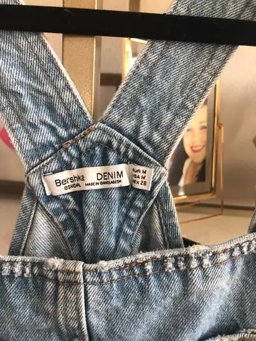 Distressed overalls. Size medium but runs a little big/looser than that
