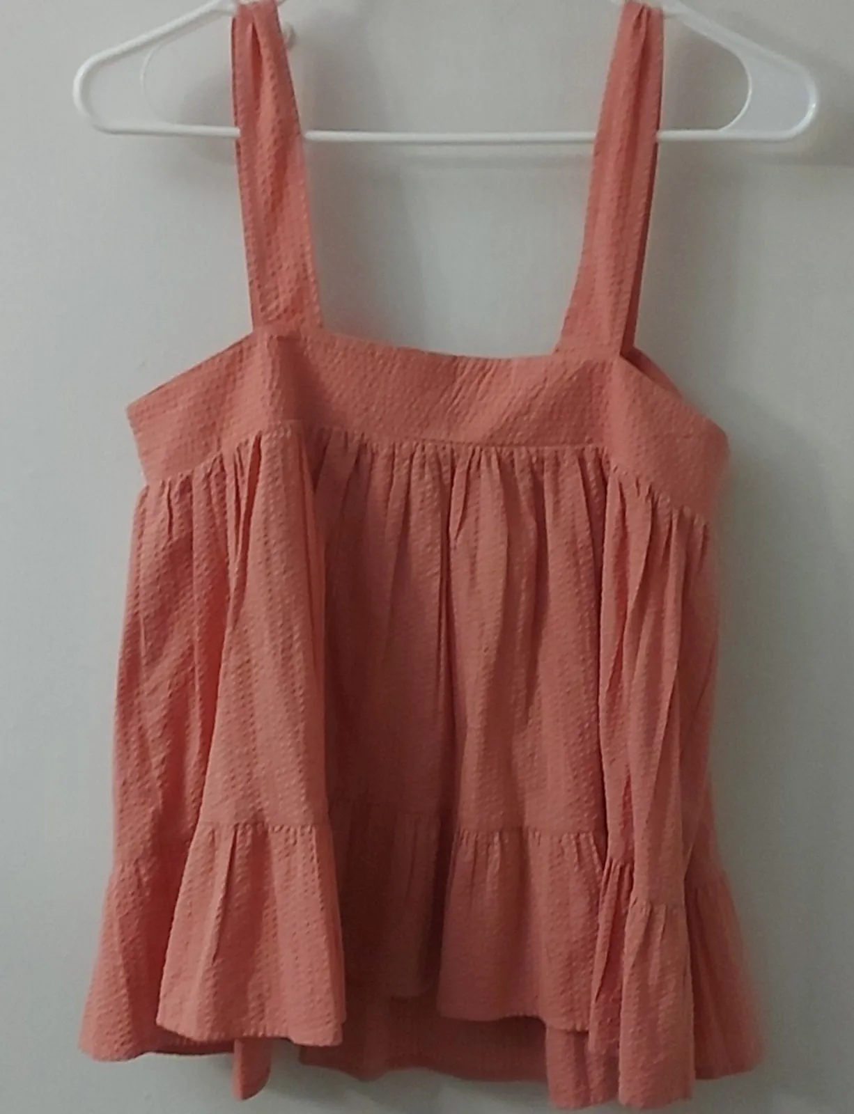 Style: Textured babydoll tank with ruffled hem Color: Pink Size: 4 Armpit: 16” Length: 24” Condition... Show more