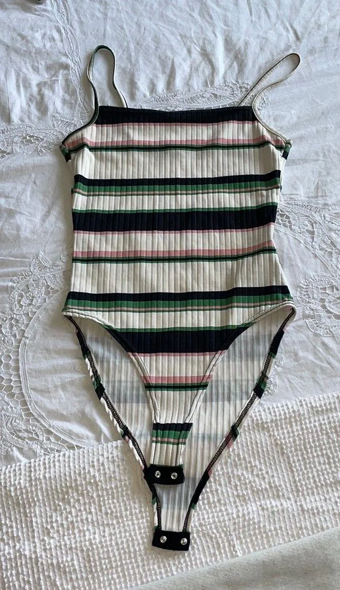 Striped bodysuit in perfect condition Size Medium but can also fit a small Very flattering on Purch... Show more