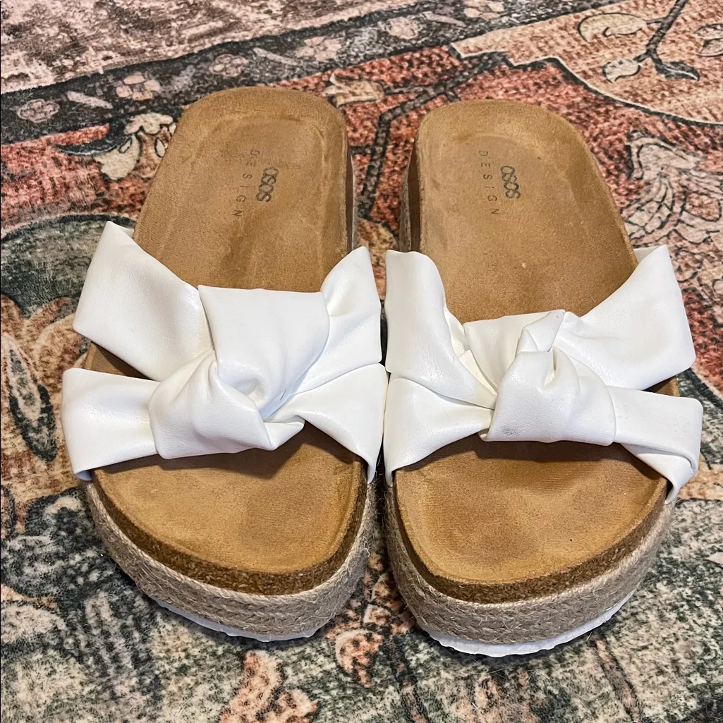 Elegant white sandals with a stylish bow. Comfortable slide design. Ideal for casual wear.