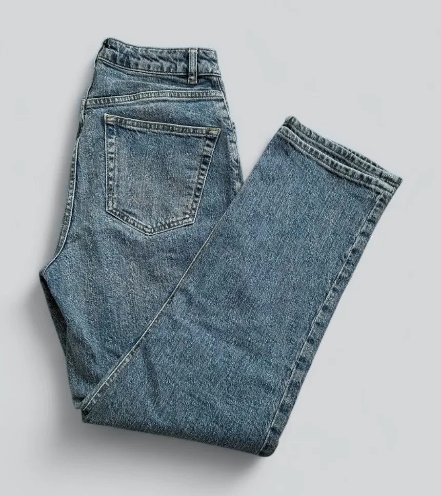 ASOS women's denim high rise straight leg jeans medium wash. Classic zipper/button closure, perfect... Show more