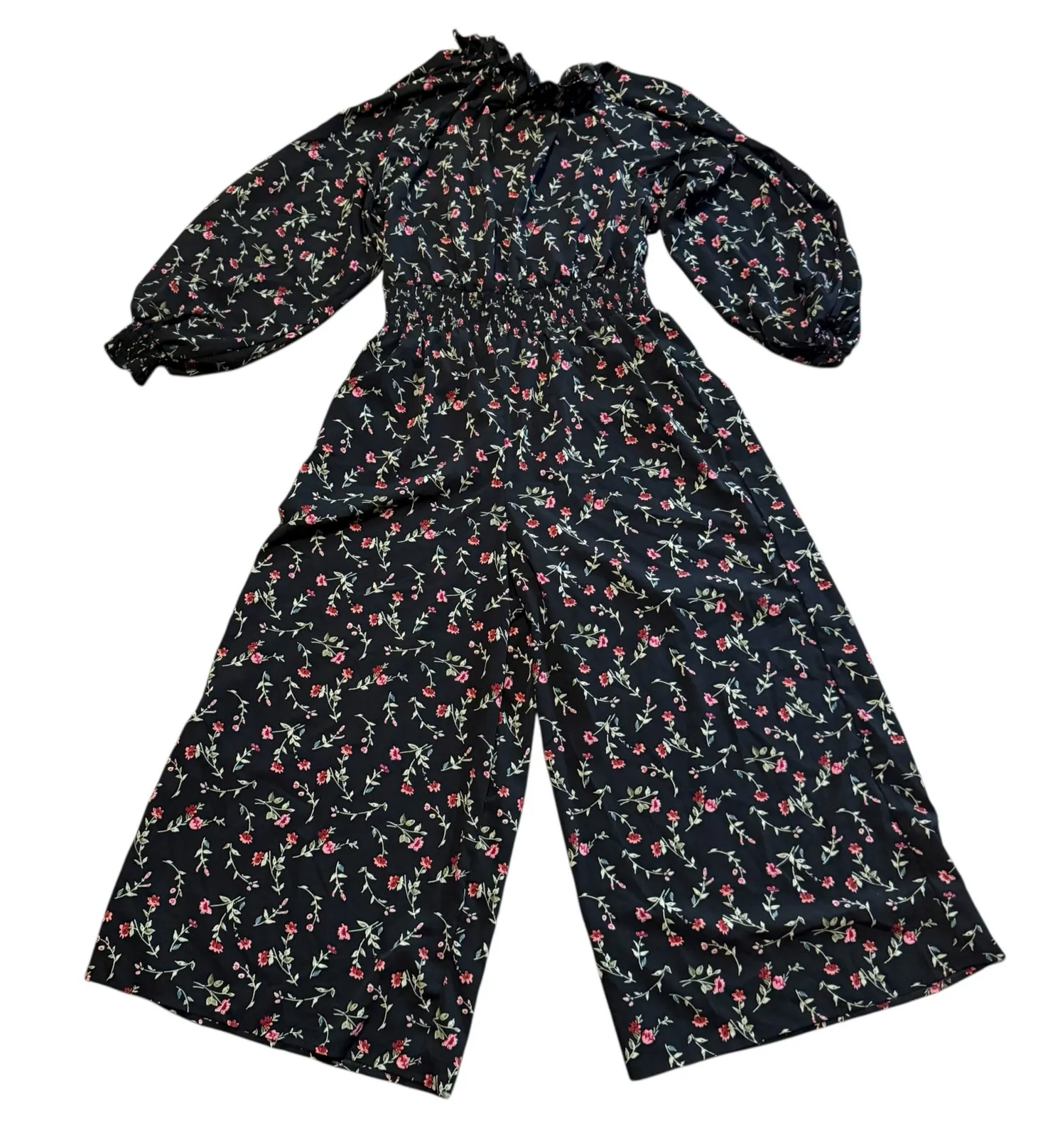 Asos Design Womens Jumpsuits Black Floral Puff Sleeve Smocked Waist Wide Leg Size 14 Condition: Goo... Show more
