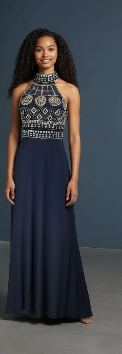 The Aspeed Hand Beaded Formal Gown Prom Dress in blue exudes elegance and sophistication, making it perfect for formal occasions. The dress features a halter neckline, long length, and intricate beaded accents, adding a touch of glamour. The vintage style and princess theme make it a timeless choice for weddings, parties, or even proms. The dress is designed to be a tank dress with a maxi or ball gown silhouette, suitable for all seasons from summer to spring. This formal gown is sure to make a statement and turn heads wherever you go.