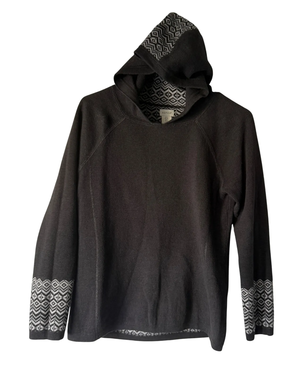 Aspen Women's Charcoal Gray Fair Isle Pattern Hoodie Sweatshirt Size S Outdoor Measurements: • Ches... Show more